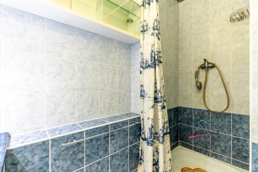 Kuchyňská linka se sklokeramickou deskou, elektrickou troubou a digestoří, koupena se sprchovým koutem a WC odděleně, bytové jádro zděné, elektrické rozvody v mědi, na podlaze dlažba a plovoucí podlaha, plastová okna, na stěnách malba.