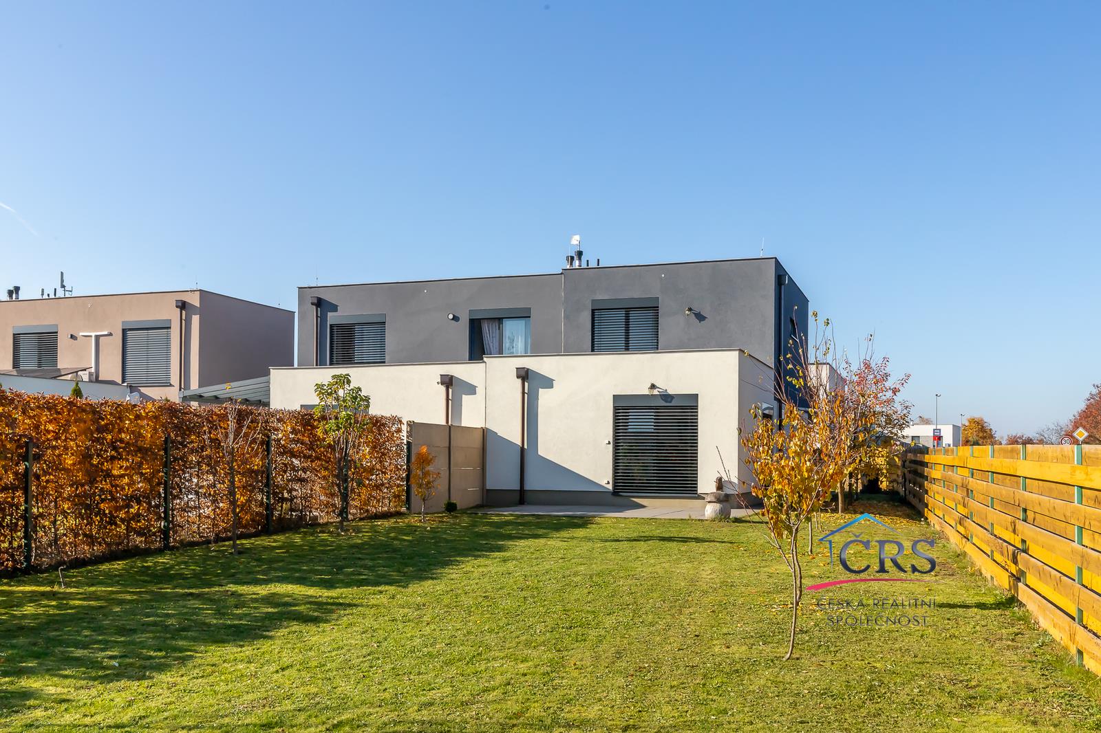 Moderní novostavba řadového rodinného domu 4+kk s terasou, zahradou a parkováním.