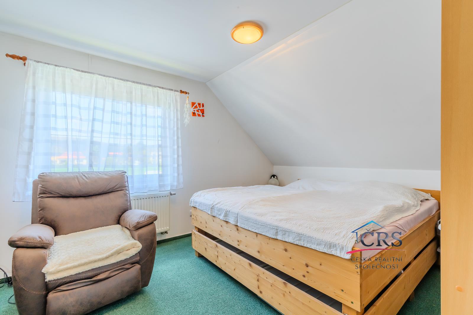 Nabízíme k prodeji patrový rodinný dům – dřevostavbu z roku 2002, která nabízí pohodlné rodinné bydlení, dostatek soukromí a příjemné zázemí na prostorném pozemku o celkové výměře 931 m².