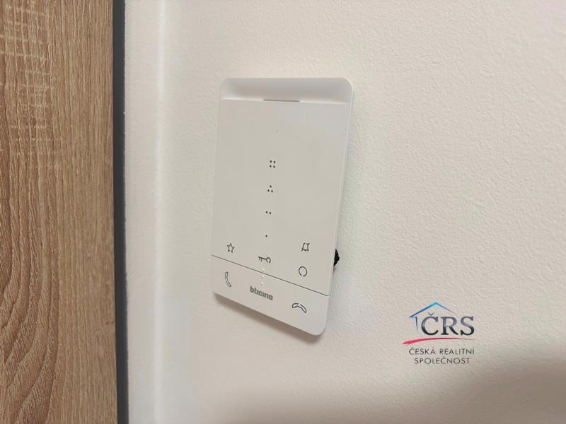 Kuchyňská linka na míru se sklokeramickou deskou, elektrickou troubou, myčkou, lednicí a digestoří. Plastové okna orientované na JZ (nyní jsou objednány žaluzie), na podlaze dlažba a plovoucí podlaha. Interiérové dveře s oblož. zárubněmi, bezpečnostní vchodové dveře. Na stěnách malba. Koupelna se sprchovým koutem a WC dohromady k dispozici pračka se sušičkou.